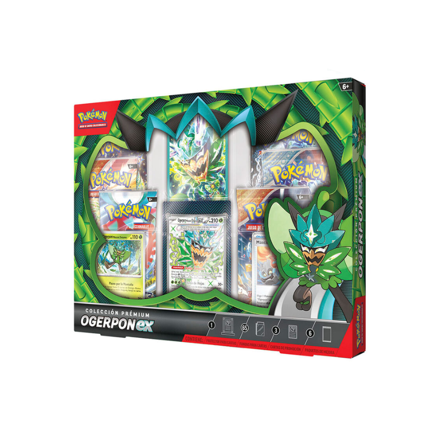 La Pokémon TCG Ogerpon ex Premium Collection – Español es una caja Premium Collection oficial del Pokémon Trading Card Game que destaca al poderoso Ogerpon ex, una carta protagonista dentro de la línea de expansiones modernas del TCG.